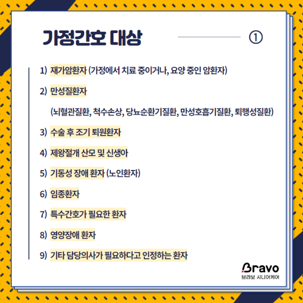 - 지원 내용: 가정방문 간호, 방문 요양, 요양 시설 이용 등