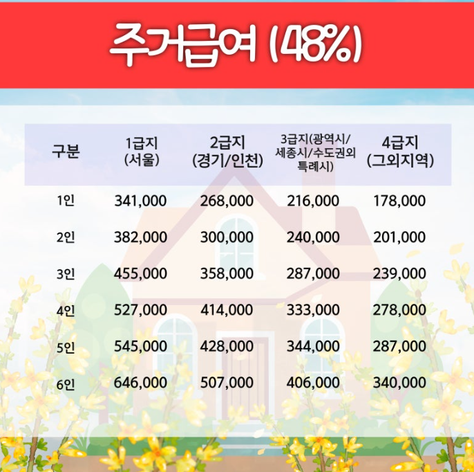 - 신청 방법: 주민센터나 복지로 웹사이트에서 신청 가능