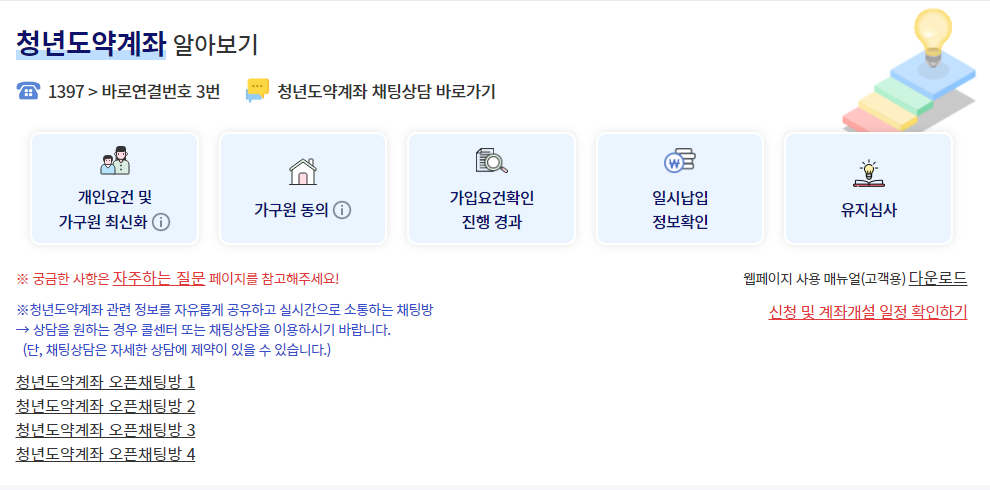 - 꾸준한 저축: 매월 꾸준히 납입하여 정부의 매칭 지원금과 고금리 혜택을 최대한 활용해야 합니다.