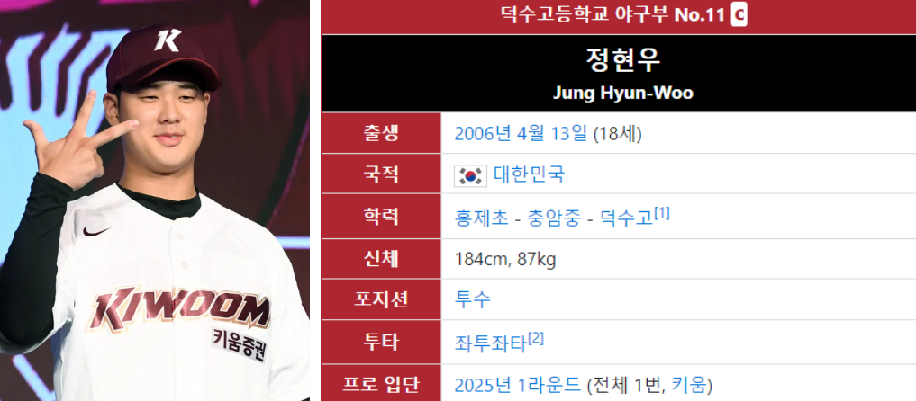 키움 히어로즈가 전체 1순위로 선택한 좌완 투수입니다. 최고 속도 150km/h의 빠른 공과 커브, 포크볼을 구사하며, 향후 키움 불펜에 큰 보탬이 될 것으로 기대됩니다.