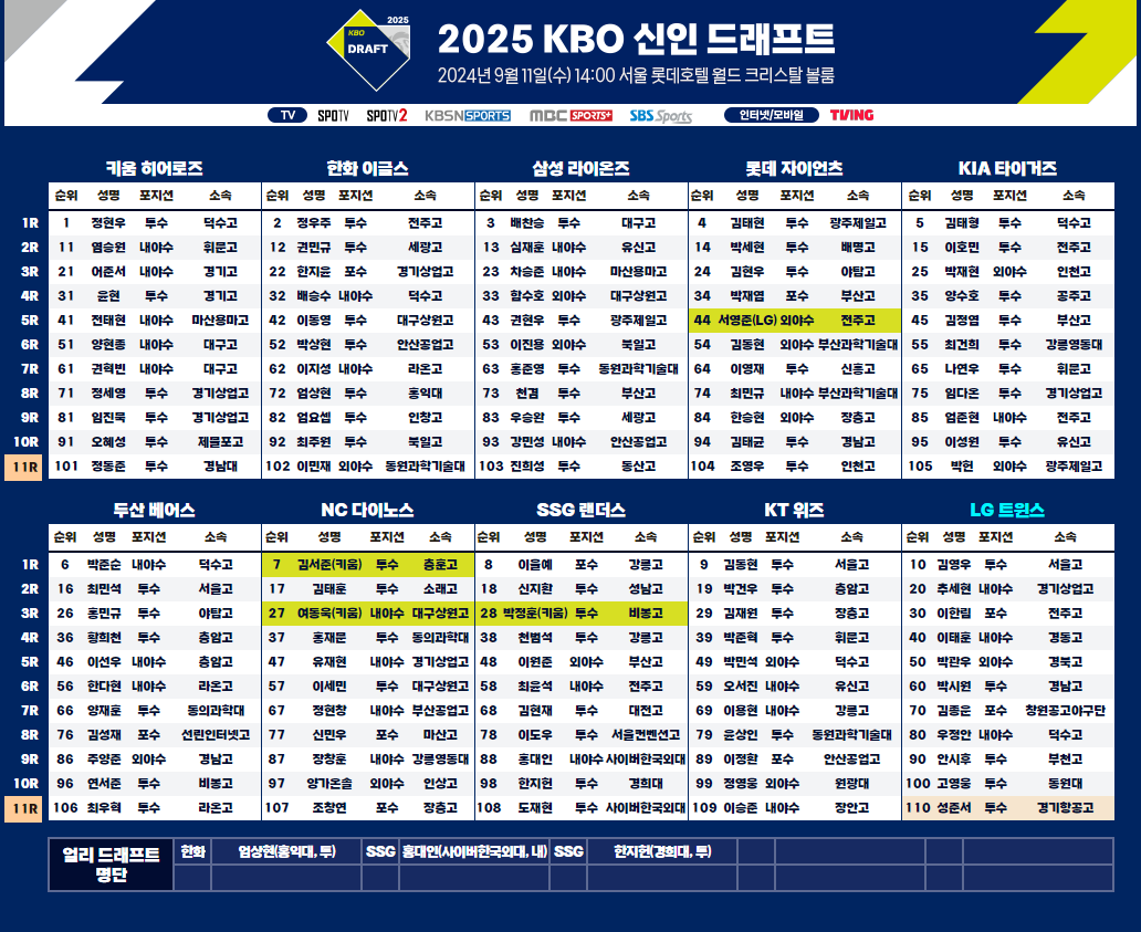 이 선수들은 각 팀의 미래를 책임질 유망주로, 이번 드래프트에서 가장 주목받고 있습니다.
